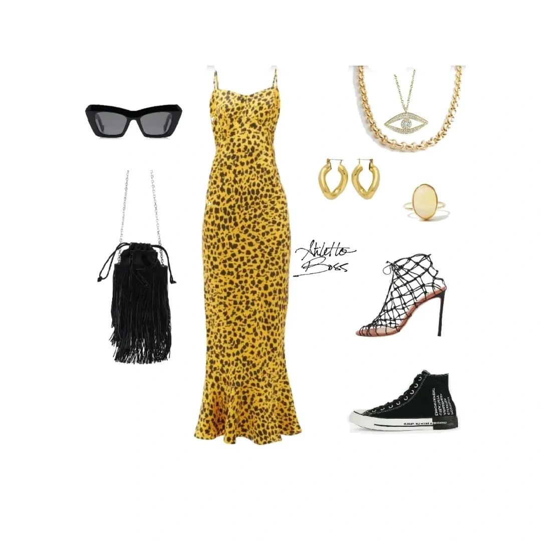 Embrace your wild side with a leopard print maxi dress. Accessorize with black sunglasses and a fringed bag for a look that screams ‘festival ready.’
