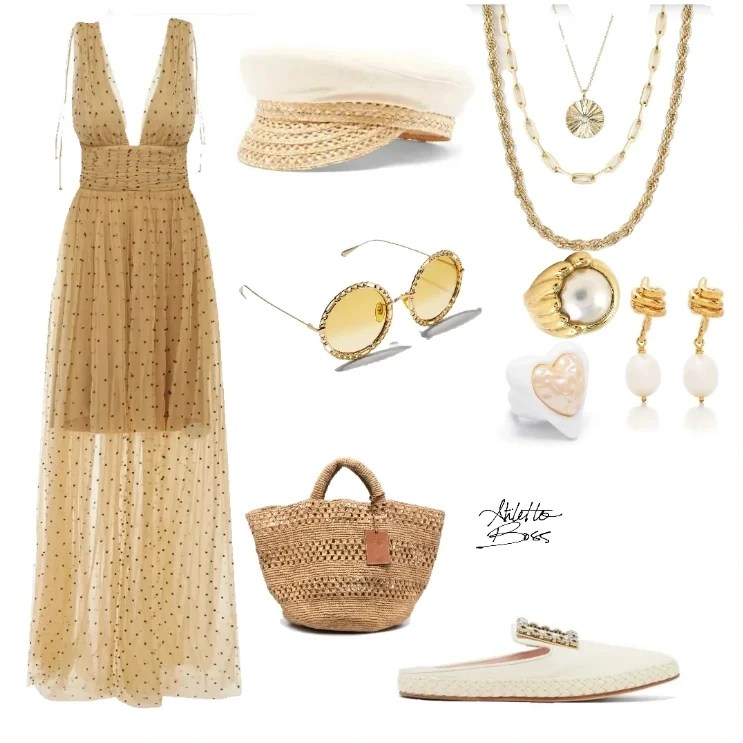 - Flowing Beige Polka-Dot Dress: The light fabric and flowing cut ensure comfort throughout the day, while the polka dots add a playful yet vintage vibe.