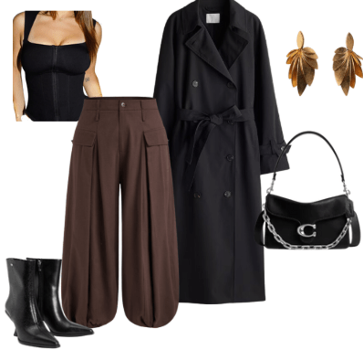 Layering Hack:Square Neck Black Corset ($118) over Wide Leg Pants ($46)