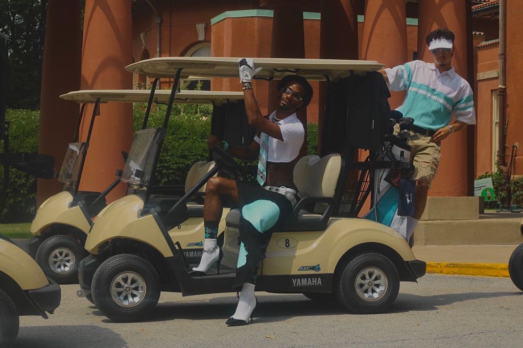 It was one of those spicy Chicago afternoons, the kind where the sun doesn’t let up. Out on a South Side golf course, two models moved across the greens in Tytus By.TYTUS. I was there on set, watching him command the scene with ease, even as the heat pressed in. There was something poetic about it: couture born from thrifted textiles, standing tall against manicured fairways. Luxury against grit, polish against raw energy—felt like the perfect backdrop for By Tytus. His mantra, “Ain’t Nun Like Tytus, Except TYTUS,” rang true in every detail; these weren’t just clothes, they were statements.